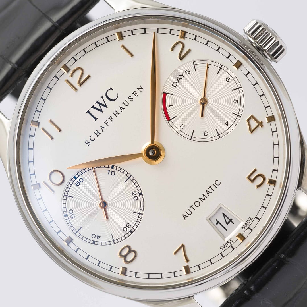 IWC Portuguese Automatic 7-Day Silver Dial w. Gold Markers Stainless Steel 42.3mm (IW500114)