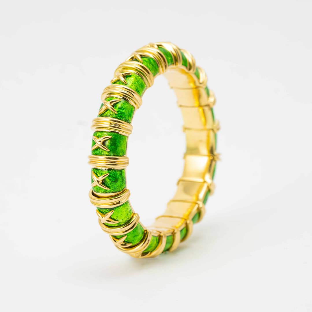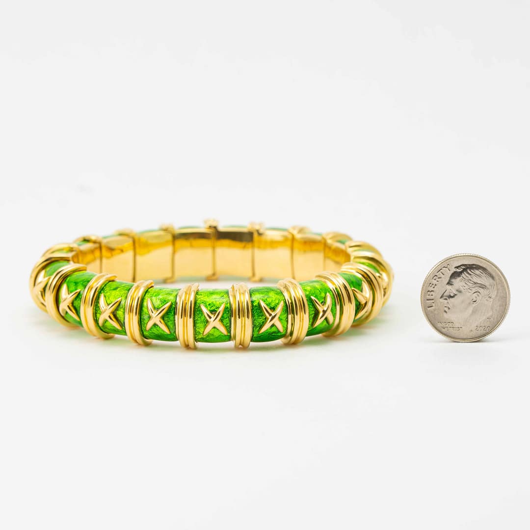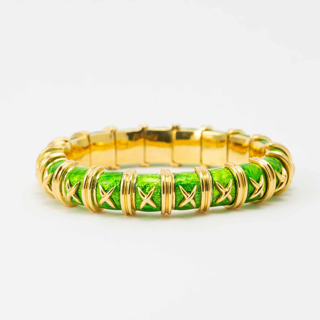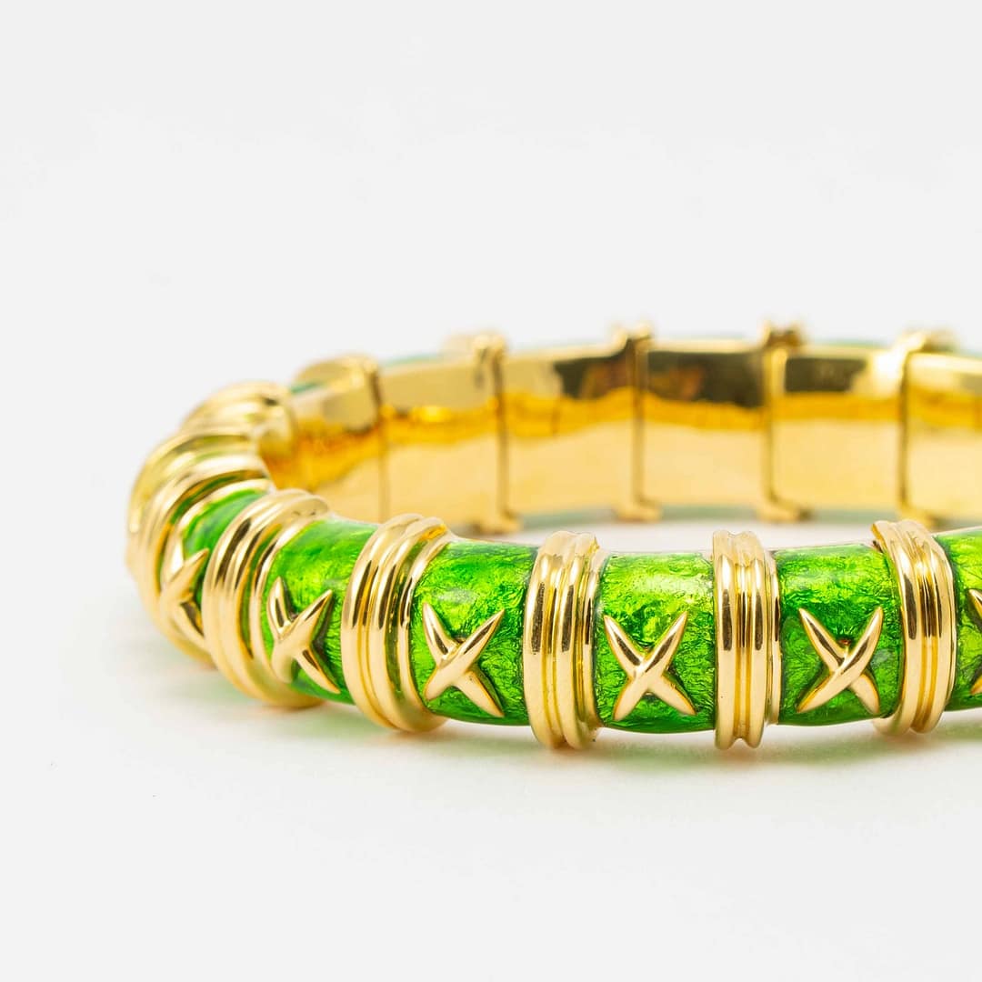 Tiffany & Co. Schlumberger Croisillon Green Enamel Bracelet (Yellow Gold)