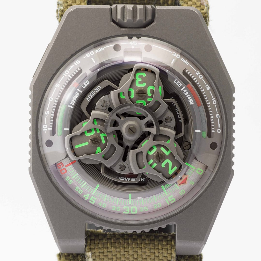 Urwerk Khaki Green Textile Strap, plus unworn Urwerk Orange Textile Strap